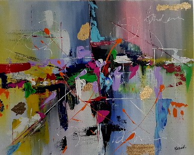Original Painted with Acrylics and Accents of Gold/Copper Leaf